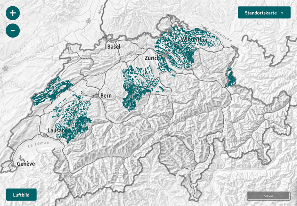 Luzern hat den Anfang gewagt und die kantonalen Standortstypen in die Tree-App integriert. Zum Jahresende kamen noch die Daten von Zürich, Fribourg und Neuchâtel hinzu. Bei diesen Kantonen erhält man jetzt mit nur einem Klick auf die Karte direkt eine Baumartenempfehlung. Das gilt überall, wo in den kantonalen Daten Standortstypen kartiert sind. Ohne diese Grundlage kann der Standortstyp weiterhin manuell ausgewählt werden. Detaillierte Ortskenntnisse oder Fachwissen über Standortstypen sind nun in diesen Kantonen nicht mehr zwingend notwendig, um die korrekte Baumartenempfehlung zu bekommen.