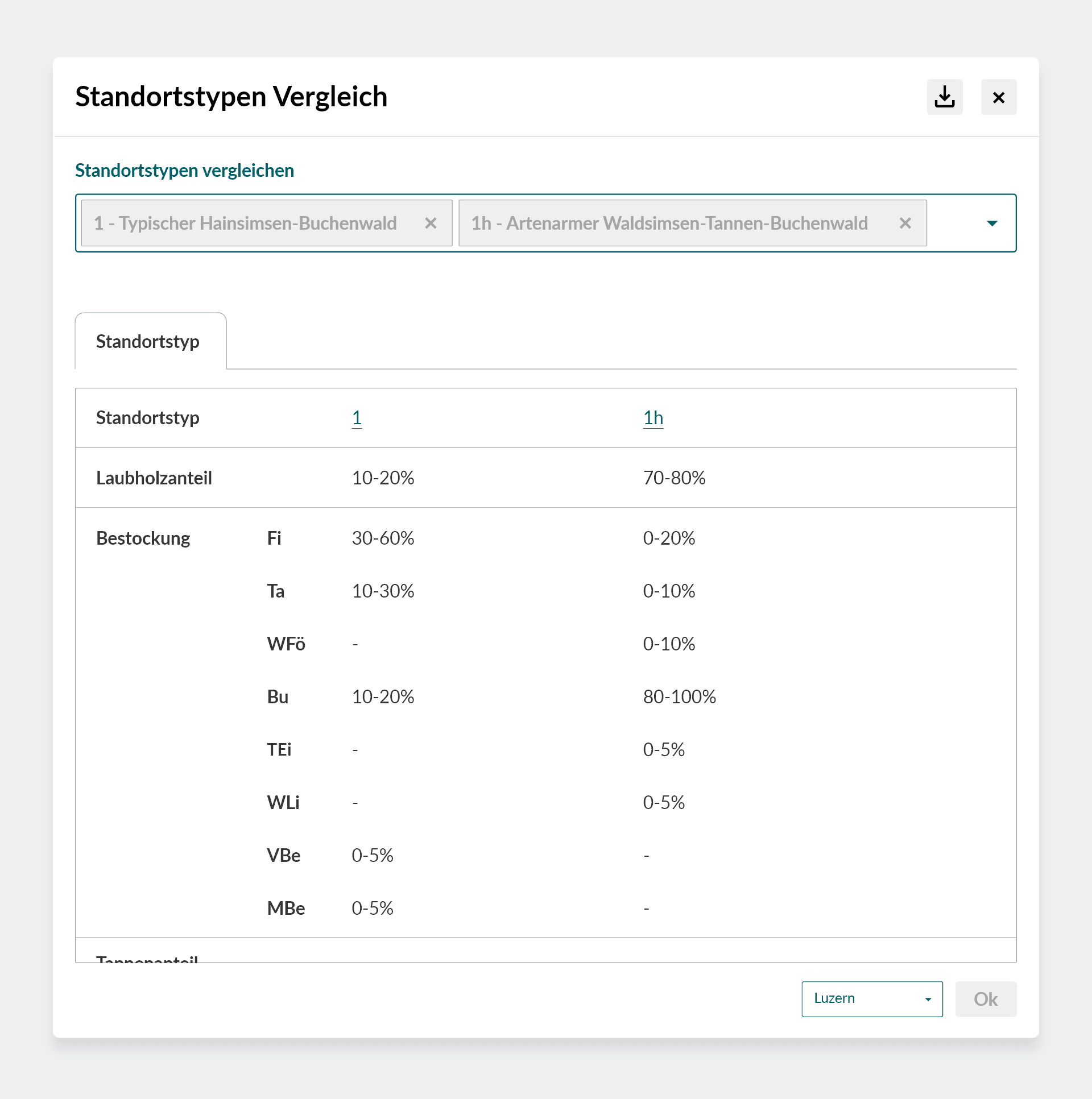 Nochmals startet Luzern als Vorreiter mit einem eigenen Profil, das kantonale Standortsbeschreibungen und deren Vergleich enthält. Besonders der Vergleich von Standortstypen bietet einen besseren Überblick der Unterschiede und begünstigt eine fundierte Entscheidungshilfe bei der Bewirtschaftung von Waldflächen. Die Tree-App soll ein Tool sein, mit dem Waldbewirtschafter standortgenau umfangeiche Informationen erhalten. Mit der Einbindung von kantonalen Besonderheiten haben wir die technische Voraussetzung geschaffen.